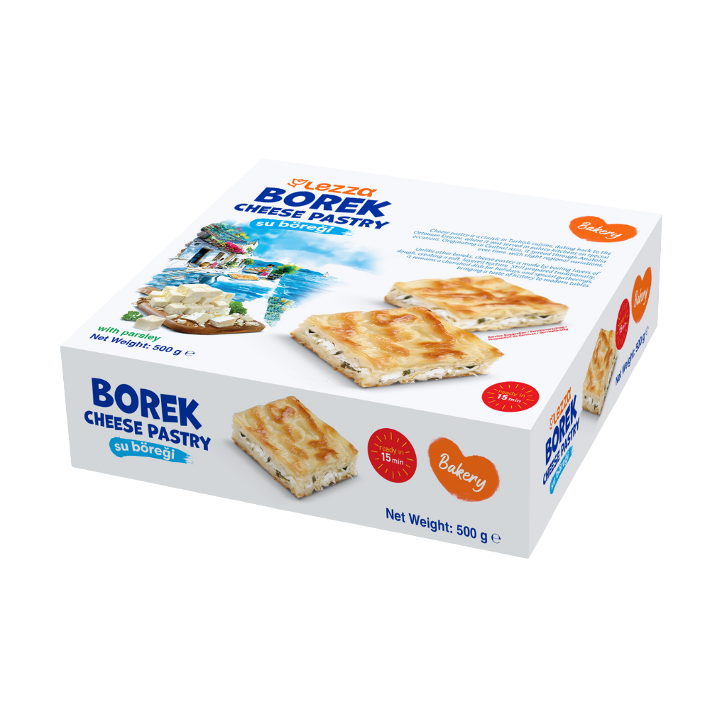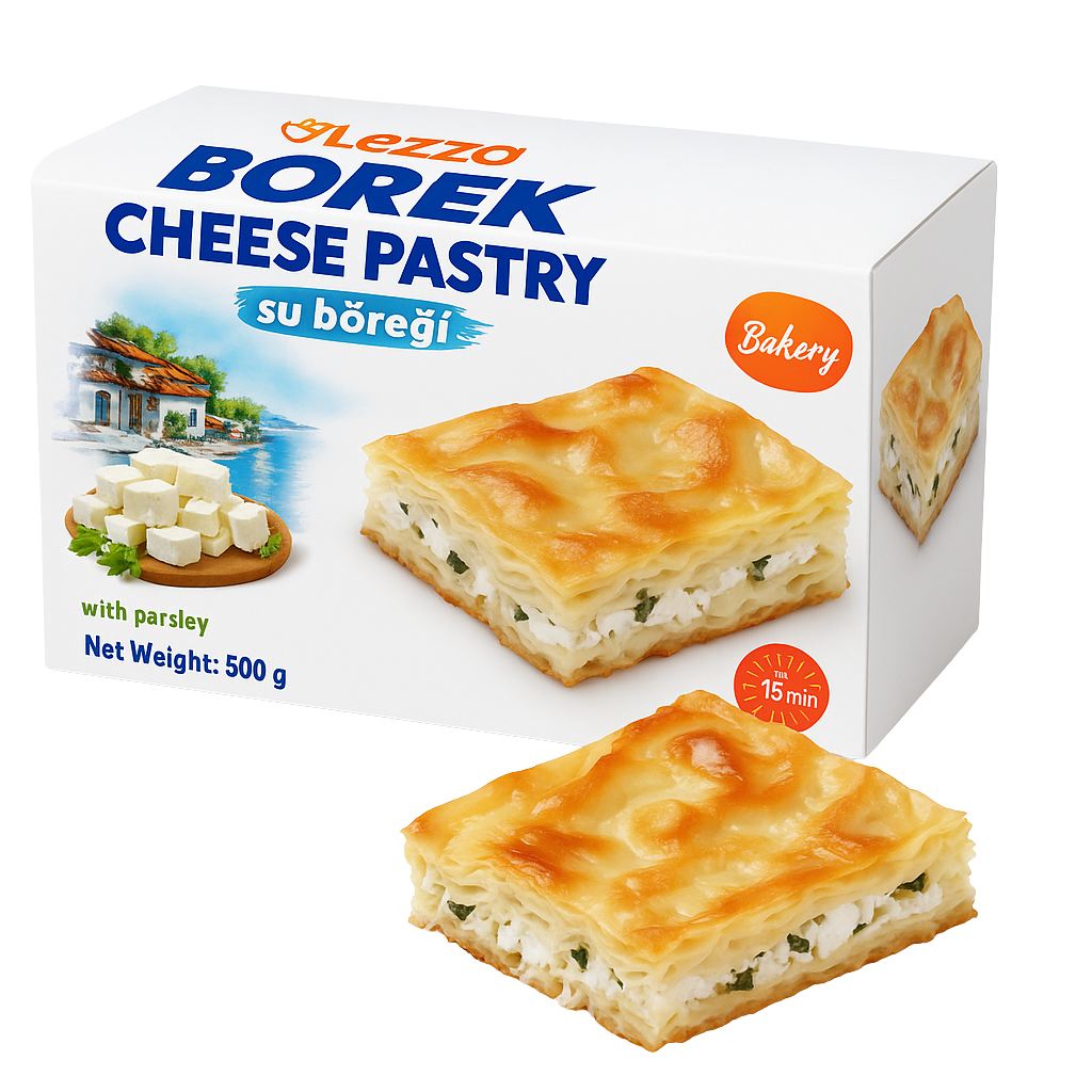 İçindekiler : Buğday unu (%30), beyaz peynir (%16), pastörize yumurta (%11), tuz (%0,15), ayçiçek yağı (%15), mısır nişastası (%5), su (%6)